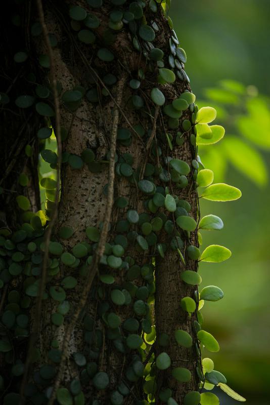 Past the loose fronds of shrubs